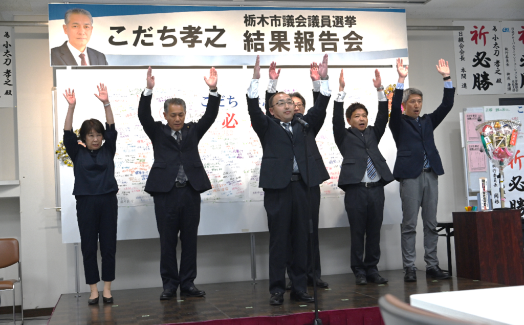 2026年4月 栃木市議会議員選挙 小太刀孝之候補当選 2026/04/22 2026年4月19日栃木市議会議員選挙において、小太刀孝之候補が当選いたしました。 小太刀孝之氏(GLS労組栃木支部)2期目当選